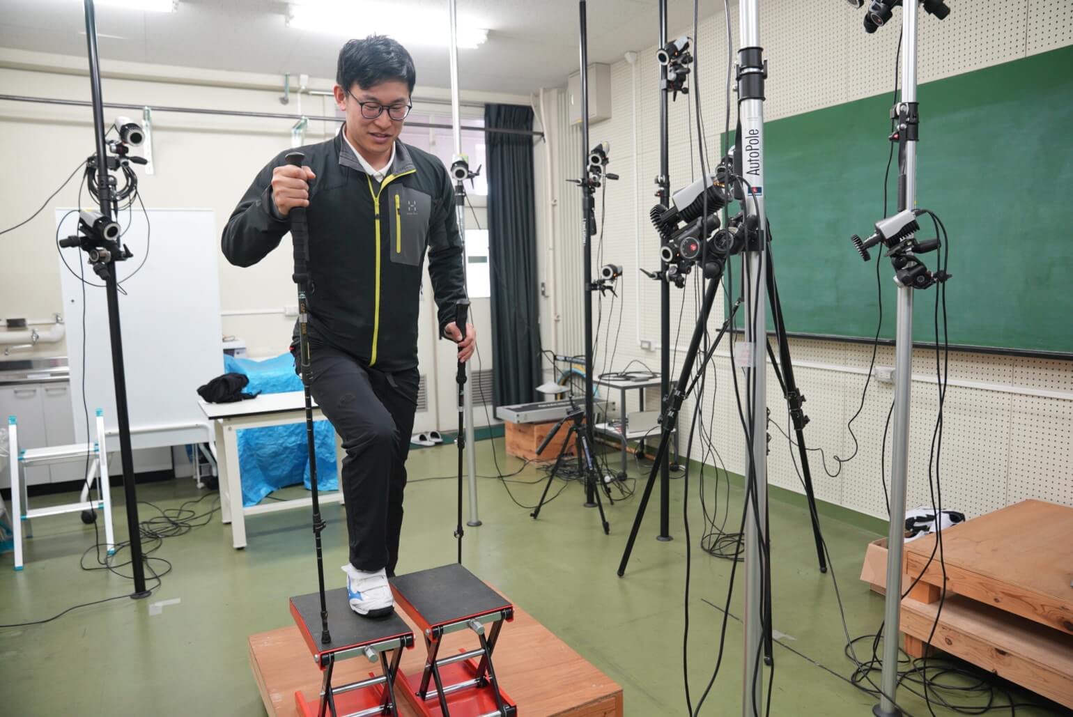 地元の山梨出身で、山好きの親の影響で登山を嗜む越水さん。学部の卒論のときからポールを使った動画の研究をしており、博士進学にあたって、「動物が地形に応じて歩き方を切り替える現象が、登山者のポール歩きを四つ足歩行と捉えれば、人間のポール歩きにも、動物の四足歩行を分析する理論的な枠組みが当てはまるのではないか」という示唆を得て、プロジェクトに参加しました。